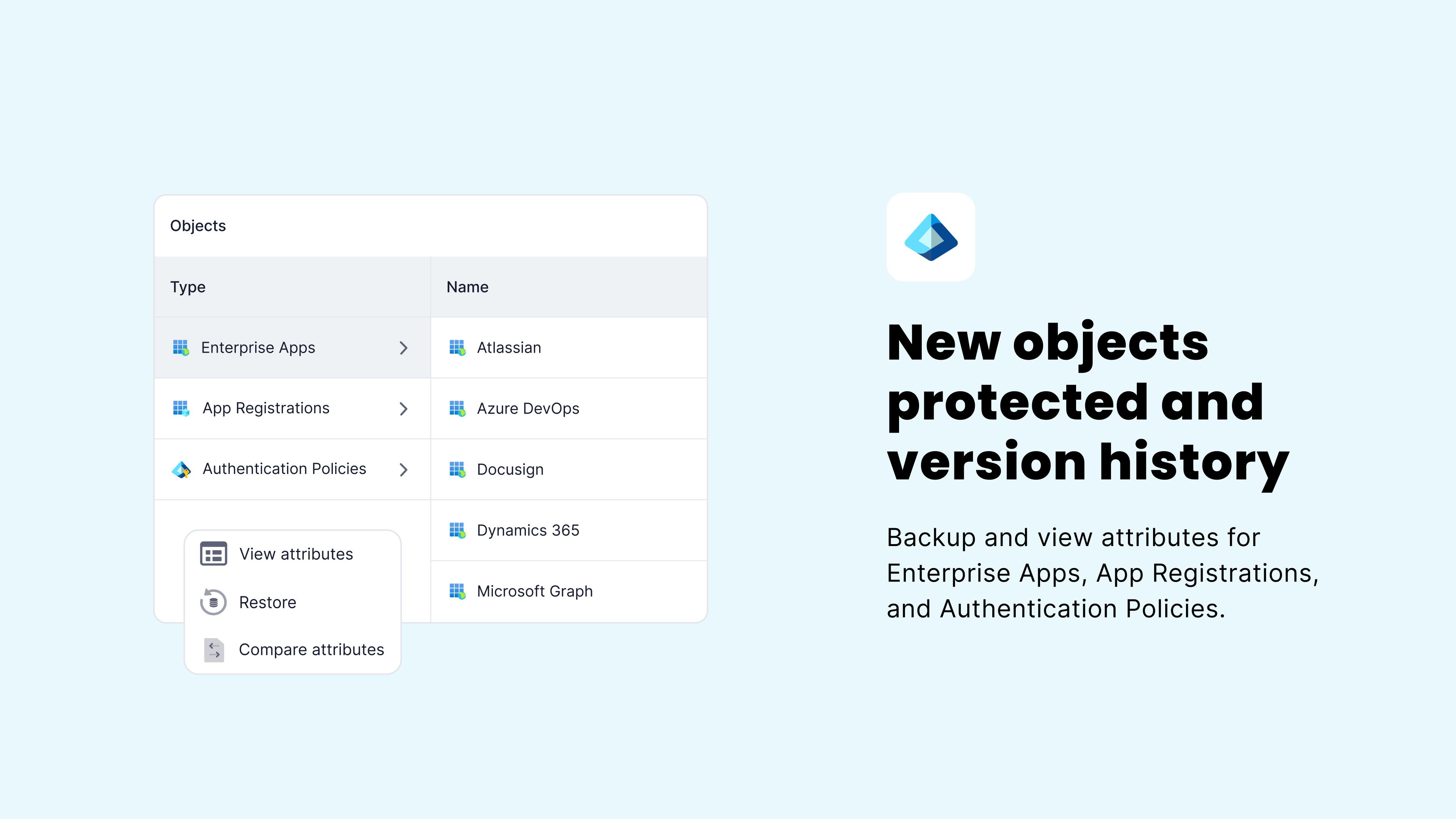 You can now back up, view attributes, and track changes for even more Microsoft Entra ID object types, further strengthening your ability to safeguard and manage critical identity components.